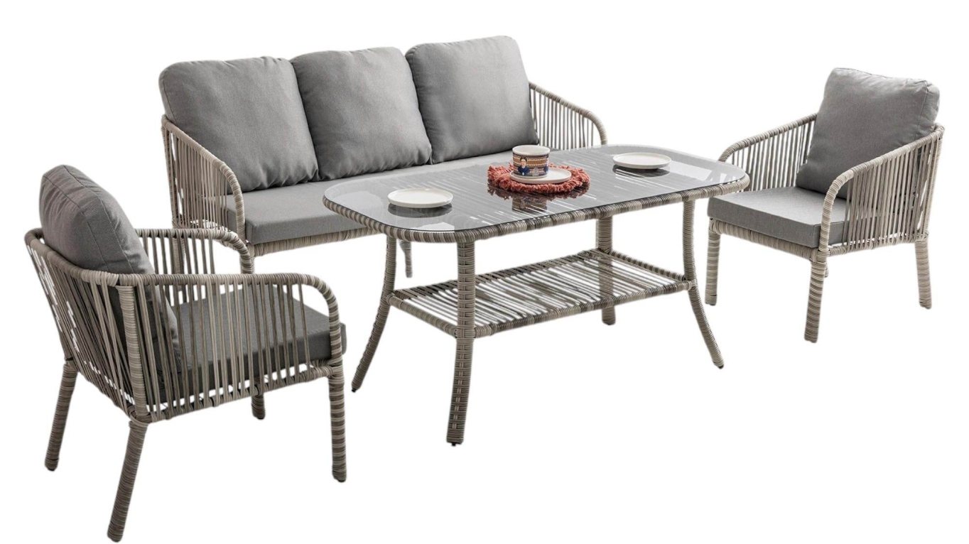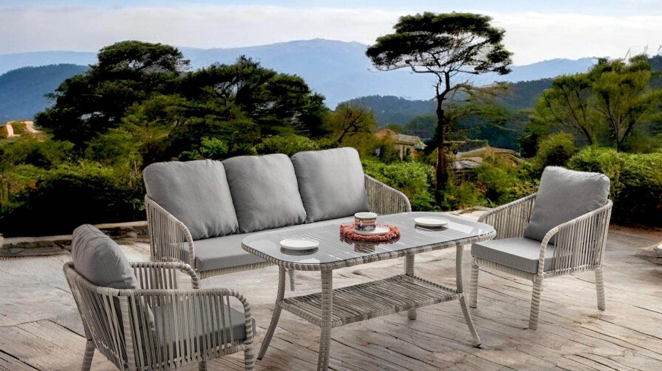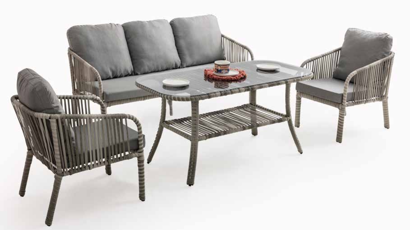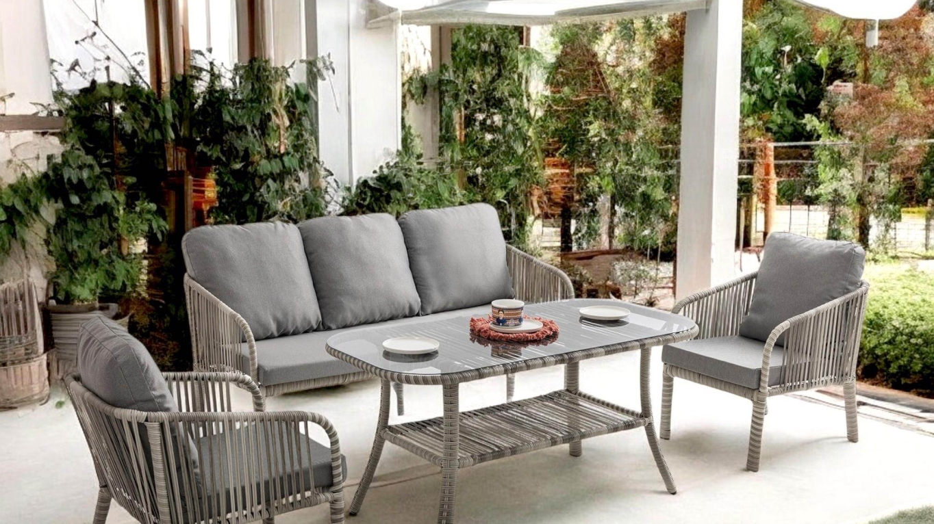 Artemis Rattan Üçlü Rattan Bahçe Balkon Takımı | Gri