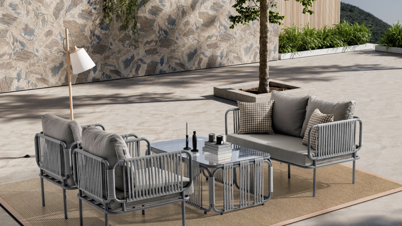 BERLİN Bahçe Oturma Grubu (2+1+1+M) Gri